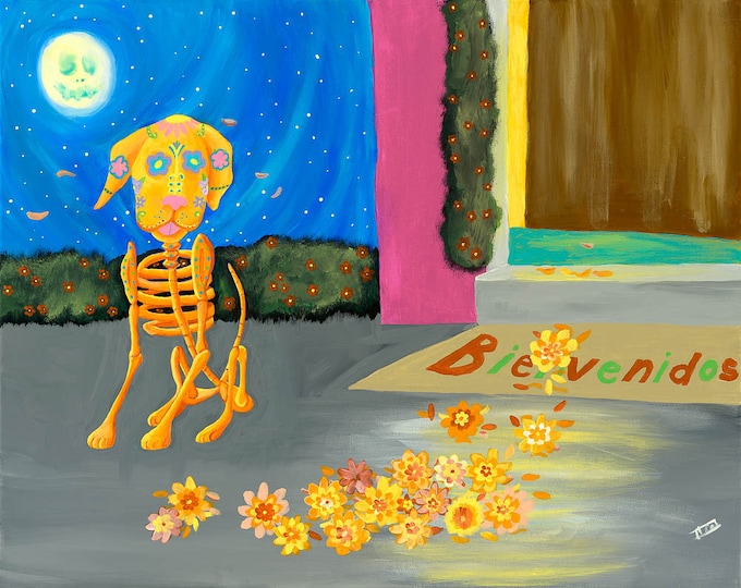 Day of the Dead Puppy Art Print – Mexican Folk Art, 12x18